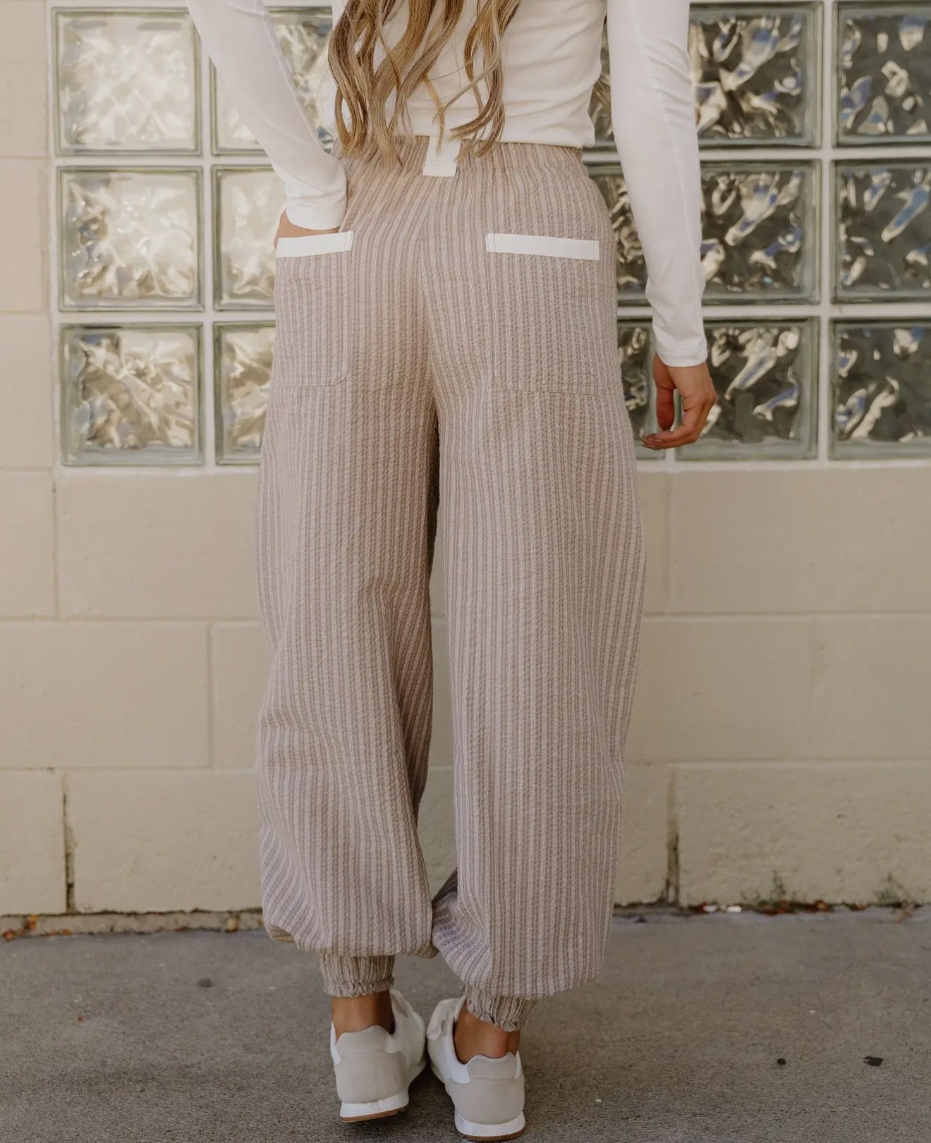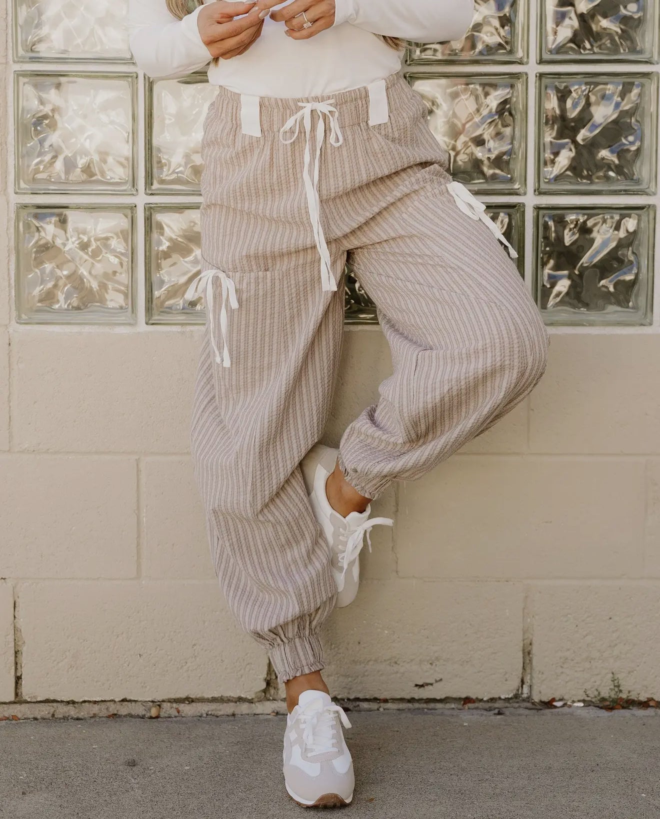 Wide leg pants with ties on the front pockets to give it that extra fun flare. Drawstring waist band. Pockets on the back.
