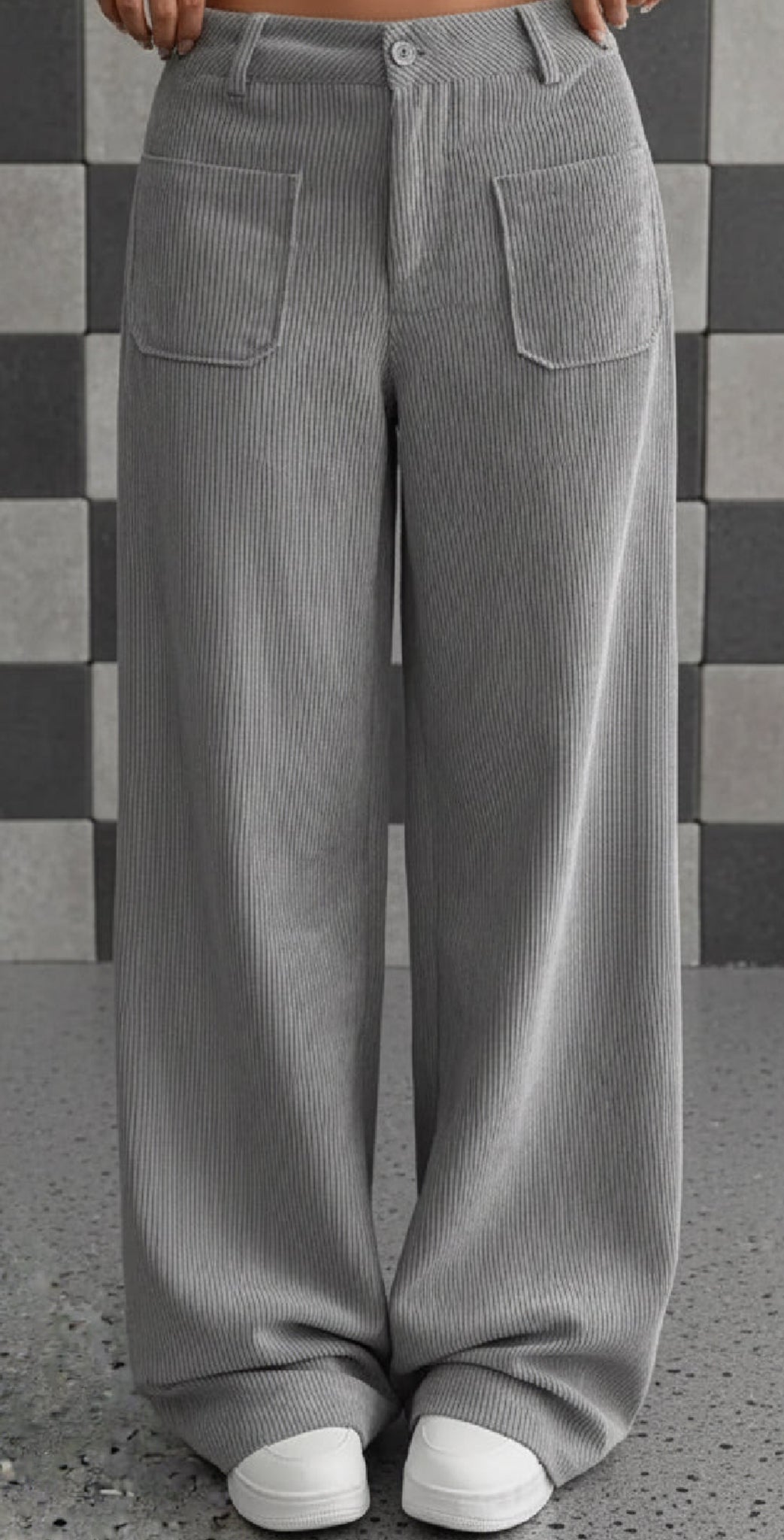 Introducing our Wide Leg Pants, available in 2 stylish colors. Made with 100% polyester, these pants feature cute front pockets and a trendy wide leg design. The fabric has a corduroy-like appearance, adding a touch of sophistication to any outfit. Complete your wardrobe with these comfortable and fashionable pants.