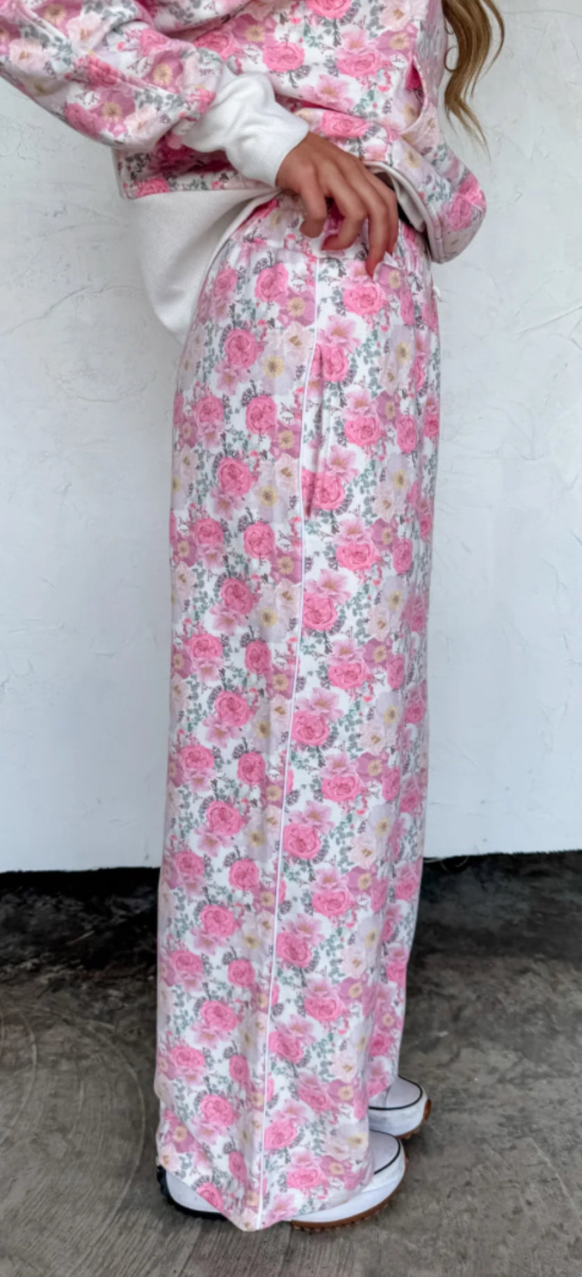 These washed printed pants scream ultimate comfort and style! Pants feature a side seam piping detail, side pockets, and elastic waist with tie string. Waist is designed to be "rolled" but can absolutely be unrolled as well!