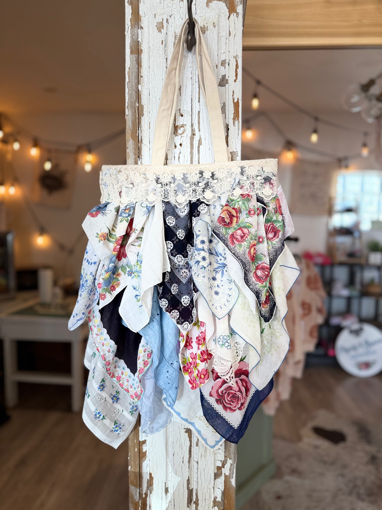Indulge in a one-of-a-kind handbag with our Rosalyn Vintage Grace Handbag. Made from 15 carefully curated and washed vintage hanky's, this unique bag is a true statement piece. Each hanky is expertly handpicked and crafted into a beautiful front and back design. Elevate your style with a touch of vintage grace. Exclusive to Soul and Grace Clothing Boutique.